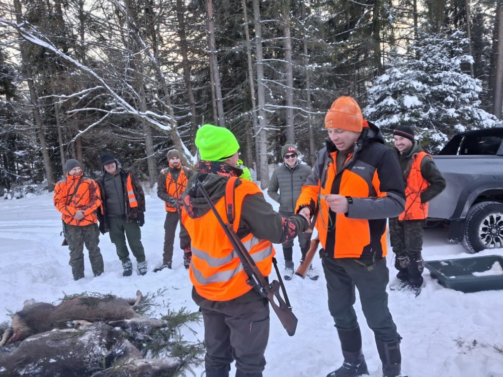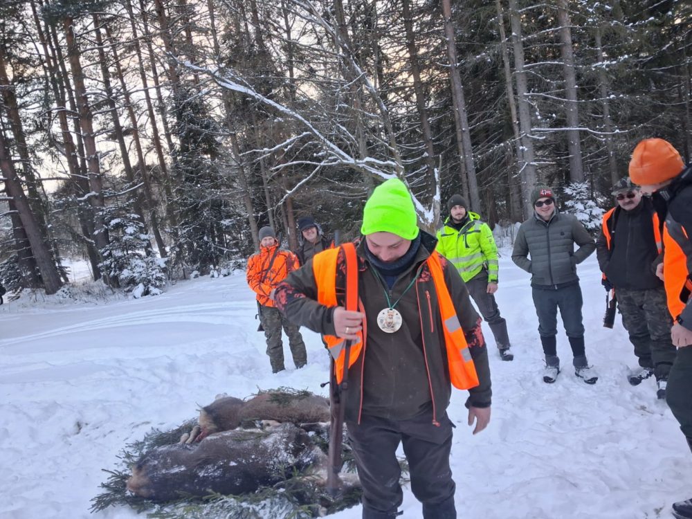 Kolejne zimowe polowanie zbiorowe w naszym kole łowieckim odbyło się w mroźnej, śnieżnej aurze, która nadała wydarzeniu wyjątkowy klimat. Dzięki dobrej organizacji i zachowaniu zasad bezpieczeństwa przeprowadzono udane pędzenia. W trakcie polowania pozyskano dwie sztuki jelenia cieląt. Całość zakończyła się tradycyjnym pokotem i podsumowaniem dnia. DARZ BÓR